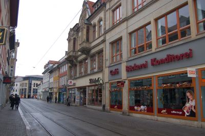 Über die Bahnhofstrasse gelangen wir zum Anger und schauen uns dort u.a. die Post, die Lorenzkirche, die Ursulinenkirche mit Kloster, das Kaufhaus Anger 1 und die Kaufmannskirche mit Lutherdenkmal an.